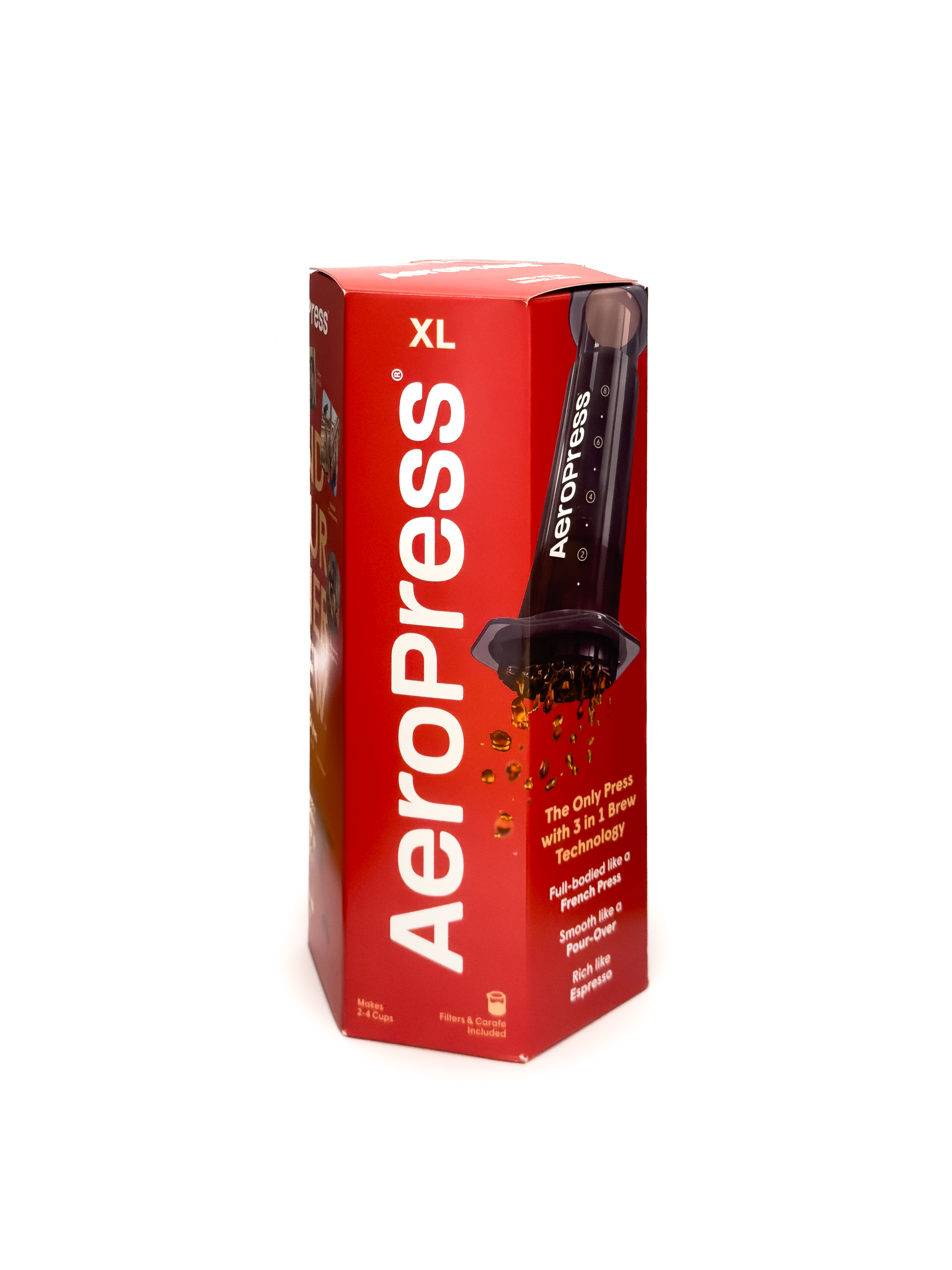 Die einzige Reisekaffeemaschine mit 3-in-1-Brühtechnologie, die es in sich hat! Sanfter, vollmundiger Geschmack ohne Bitterkeit. Die klassische AeroPress eben, aber in der XL-Variante mit 550ml Fassungsvermögen.