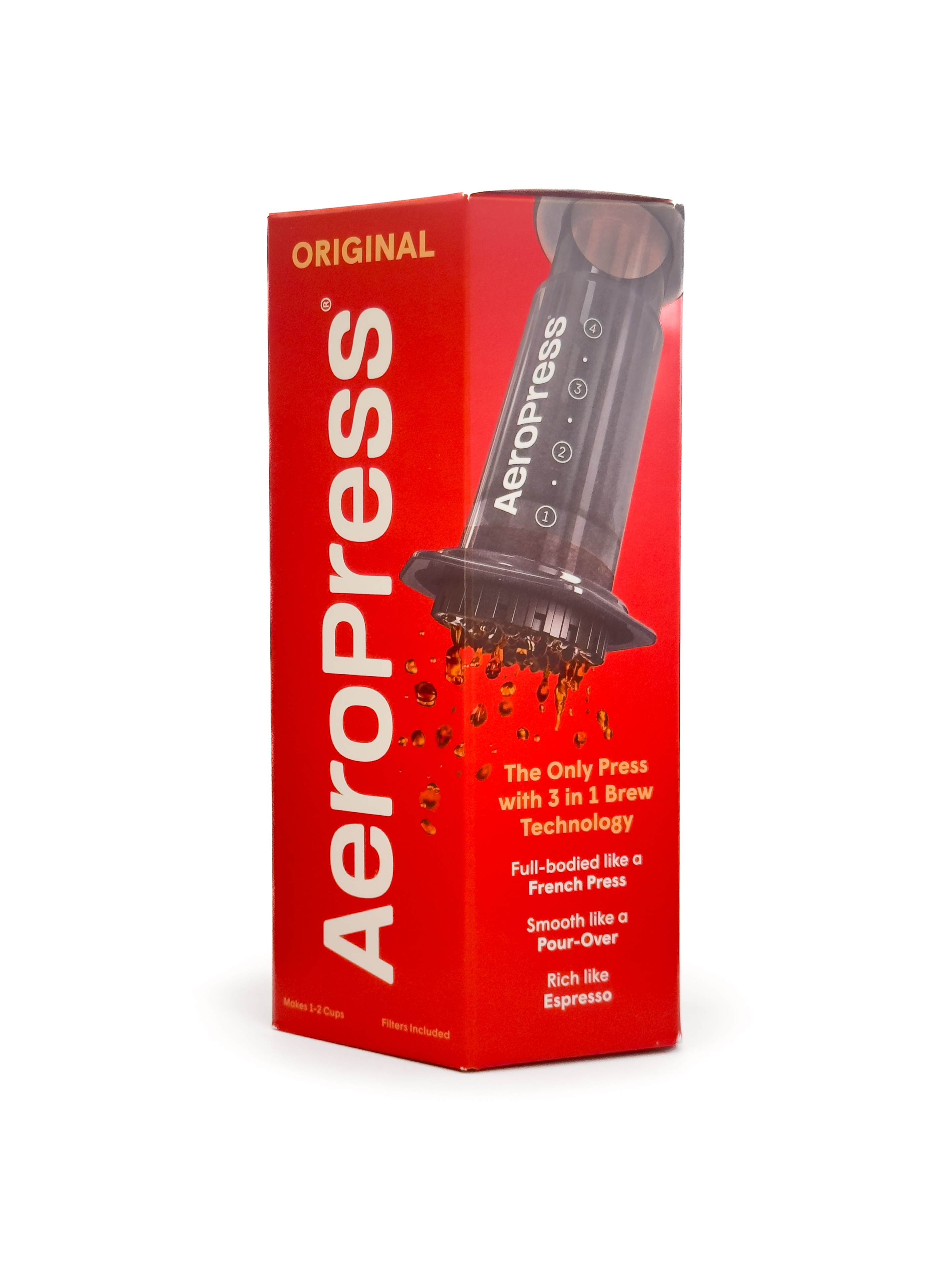 Die einzige Reisekaffeemaschine mit 3-in-1-Brühtechnologie, die es in sich hat! Sanfter, vollmundiger Geschmack ohne Bitterkeit. Die klassische Aeropress eben.